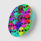 Um relógio de parede divertida com faces de alienígena brilhantemente coloridas. Bobo, decoração engraçada para o quarto de um adolescente ou outro espaço que pode levar um pouco de humor! Disponível em dois tamanhos de relógio redondo, ou um relógio grande de parede quadrada. Copyright Scarebaby Design.