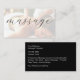 Cartões de visitas de tendências para um serviço de terapia de massagem ou terapia de massagem projetado com um gráfico de um cliente que recebe uma massagem e um layout de contato simples que você pode editar on-line.