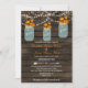 Rustic Barnwood, luzes de cordas balançando com folhas de carapaça de outono em convites de casamento de jarro de pedras. Produtos correspondentes também disponíveis.