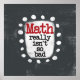 Uma peça tipográfica temática divertida com as palavras "Matemática realmente não é tão má". É cinza e branco com texto preto e vermelho e pontos brancos brancos em torno da frase.