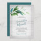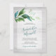 Este convite de casamento rústico mostra seus nomes em uma tipografia de script manuscrito de na moda com detalhes de eventos em uma seringa de cinza de carvão clássico, se houver uma fonte sobre um fundo de madeira com uma camada superior de verde-aquarela botânica em tons de blues, verdes e lacas. A carta de convite reverte para uma cor de chá complementar. Uma opção botânica, mas boêmica, para o casamento no celeiro do país com um tema de jardim de verão. Para ver toda a minha suíte, visite o DoTellABelle no Zazzle. Criador de convites online.