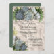 Convite na praia com designs Sul-Africanos Suculentos. Pokons são lindas flores tubulares verdes azuis pálidas, olhando com folhas cheias de seiva.