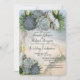 Convite na praia com designs Sul-Africanos Suculentos. Pokons são lindas flores tubulares verdes azuis pálidas, olhando com folhas cheias de seiva.