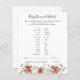 Este cartão de jogo de chá de fraldas apresenta belas florais de inverno de cor aquosa, em tons de vermelho e branco, que são balanceados com verde-luxuoso, fazer-o uma paleta quente e arejada. Altere a cor de fundo ou adicione gráficos para corresponder ao tema do chá. Precisa coordenar gráficos, entre em contato comigo para obter um pedido personalizado. Claro que não é necessário que você jogue jogos no chá de fraldas, mas considere isso: Você terá um grupo de todas as idades, e a maioria dos convidados provavelmente nunca se conheceram antes da festa. Misturar alguns desses jogos clássicos de chá de fraldas é uma maneira perfeita de quebrar o gelo. Essas placas projetadas profissionalmente são rapidamente personalizáveis. Adicione seu texto personalizado a este design usando as caixas "Editar este modelo design" no lado direito do item, ou clique no botão azul "Personalizar" para organizar o texto, alterar as fontes e cores e também adicionar informações ou imagens adicionais a este design. Clique em "Personalizar mais" para abrir as opções de edição de cheio. Se você precisar de algum item de coordenação (cartões de agradecimento, etc.), entre em contato comigo para obter um pedido personalizado. ****Para pedidos personalizados com os quais necessita da minha ajuda, não coloque esta mercadoria no carrinho. Em vez disso, envie-me um e-mail com sua solicitação em lauralise@iyhtvdesigns.com Um link para sua mercadoria será enviado a você por e-mail assim que o item estiver disponível. Você pode usar esse link para fazer seu pedido. Por favor, aguarde até 48 horas.
