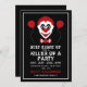 Estes convites são perfeitos para qualquer um que planeje uma celebração de Halloween. A design apresenta um palhaço assustador com dois balões vermelhos e é terminada com uma redação editável. Esta design divertida pode ser personalizada para se adequar ao seu evento especial e será o anúncio perfeito para qualquer festa tematizada do Dia das Bruxas, incluindo festas de aniversário, solteiros e solteiros e muito, muito mais.