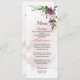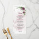 lindas flores rosas de mauve rosas e verdes deixam cardápio romântico de casamento.