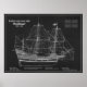 Planos de nave Mayflower. O famoso navio do século XVII que transportou os peregrinos para a América. Enviar plano. Planos de desenho ou esquemas com contorno de design para Mayflower