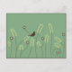 Uma linha simples que se baseia num fundo verde em pastéis macios que apresentam alguns pedúnculos longos de erva, flores e um pássaro doce.