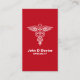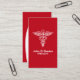 Um cartão de visita moderno e contemporâneo com um caducamento branco sobre fundo vermelho. Áreas de texto personalizáveis para o nome, o nome da especialidade ou da clínica e outras informações de contato no verso. Para obter solicitações personalizadas ou ajuda para personalizar, use o link de contato de armazenamento acima. cartão de visita de médico legante, excelente para um médico de medicina geral e outros médicos.