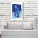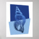 Poster num médio moderno, minimalista, ao estilo boho impressão de uma concha turbana num gradiente azul-oceano contra formas geométricas de azul escuro e claro