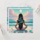 Linda arte ai retratando uma linda mulher meditando na praia com pina e nuvens azuis, ondas oceânicas, areia branca e vidro marinho.