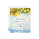 This timeless Save the Date showcases a beautiful blend of sunny yellow lemons and soft ocean blues, giving your guests the first glimpse of your sunny celebration to come. Fully customizable with your names, wedding date, and details.
