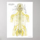 Poster da medula e dos nervos cranianos. A ilustração mostra os 12 nervos cranianos da base do cérebro. Os nervos espinhais da parte anterior da coluna.