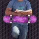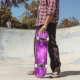 Este skate incrível apresenta uma imagem fractal que se parece com uma bola central de mega-relâmpagos roxos brilhantes com relâmpagos perfurados em todas as direções.