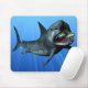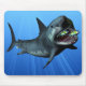 O Megalodon era o predador mais poderoso nos mares da Era Cenozoica da história da Terra. Aqui ele devora dois atum nadando rápido em um grande gole. Esse tubarão tinha 16 metros ou 52 pés de comprimento e seus dentes permanecem em camas fósseis.