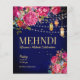 Orçamento Mehndi Convite Starry noite com lanternas árabes e luzes de fadas com flores de burgundy.