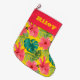 Flores de hibisco exóticas, folhas de monstera e frondes de palma num fundo amarelo brilhante, impressas vívidas e personalizadas de qualquer forma que escolhermos sobre o tema tropical, meias de Natal em dois tamanhos. Escolha entre 3 estilos de material diferentes. Nós projetamos para impressão de dois lados, mas você pode escolher um painel vermelho sólido. (Alça vermelha no topo é IMPRESSA, não é uma peça separada e você pode mudar a cor.) **Personalize seu estoque e adicione-o ao seu carrinho de compro para cada nome que criar.