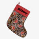 Um design de flores rosa-quentes e manchas-leopardo-pretas extremamente divertidas em um fundo esticado claramente impresso e personalizado de qualquer maneira que você escolher sobre o tema tropical meias de Natal em dois tamanhos. Escolha entre 3 estilos de material diferentes. Nós projetamos para impressão de dois lados, mas você pode escolher um painel vermelho sólido. (Alça vermelha no topo é IMPRESSA, não é uma peça separada e você pode mudar a cor.) **Personalize seu estoque e adicione-o ao seu carrinho de compro para cada nome que criar.