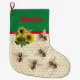 Essa estocação apresenta um girassol ouro e cinco abelhas para um design de Natal festivo. Se você ou seu receptor ama abelhas ou a natureza, este design único pode ser o toque certo para ajudar a celebrar os feriados. A parte superior é verde com uma borda vermelha, com o nome do seu destinatário ou do seu destinatário em vermelho. A parte de trás da estocagem é um vermelho sólido. Importante: digite o nome do seu destinatário ou destinatário na seção Personalizada.