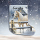 Uma encrenca de Natal personalizada e adorável com um cavalo branco bonito numa fazenda rústica.
