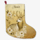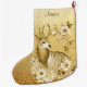 Meia De Natal Grande Dourada Reindeer Floral - Stocks de Natal