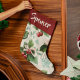 "Celebrate the season in style with this Elegant Holiday Pattern Christmas Stocking, featuring lush green leaves, bright red cherries, and delicate pink pastel bows. Its sophisticated and whimsical design adds a festive yet refined touch to any mantel, staircase, or holiday display. Add a name to make this stocking a unique and treasured keepsake for children, family members, or friends. Personalization makes holiday traditions extra special year after year."