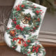 Aqui está... esta é a sua nova estocagem de Natal! Uma meia de Natal é um saco festivo em forma de meia que as pessoas pendem durante o feriado, normalmente pela lareira ou ao pé da cama. É tradicionalmente cheio de pequenos presentes, doces e guloseimas na véspera de Natal. A ideia é que Papai Noel vem e enche as meias de guloseimas para todos aproveitarem na manhã de Natal. Eles vêm em todos os tipos de designs, cores e tamanhos, muitas vezes personalizados com nomes ou decorados com temas de férias como flocos de neve, renas ou Papais noeis. É uma tradição divertida e encantadora que adiciona um pouco de magia extra ao Natal! Se o estoque tiver letras, você pode personalizá-las adicionando sua própria mensagem de Natal ou qualquer nome