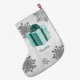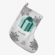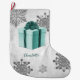 Adicione um toque festivo ao manto de lareira nesta temporada de férias com um Teal Christmas Gift Holiday Stocking. A design de estoque apresenta um presente de Natal embrulhado e vibrante, adornado com cinzas e flocos de neve brancos contra um fundo de nuvens de cinzas com um espaço que você pode adicionar seu nome para personalização. Itens adicionais de presentes e feriados disponíveis com este design também.
