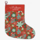 Meia De Natal Grande Feriado Vermelho Floral