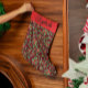 Meia De Natal Grande Folhas ocas vermelhas e verdes e nome personalizad