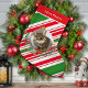 Espalhe a alegria de Natal com esta meia de Natal personalizada que mostra a foto do seu gato amado! Perfeito para amantes de gatos que apreciam seus familiares felinos e tradições festivas. Apresenta riscas vermelhas, brancas e verdes alegres com a tipografia "Purrs, Love, and Joy" e um adorável quadro fotográfico bauble de ouro. Totalmente personalizável com o nome do seu gato e a foto favorita. A design de stripped branca cria uma decoração sazonal alegre que traz sorrisos para a manhã de Natal. Ideal para meias de gatos, decoração de festas de animais de estimação, e celebração do seu companheiro de felino peludo! Precisa de ajuda de personalização? Entre em contato com remidevandesigns@gmail.com para obter suporte para o design. RemideVan©