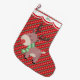 Aqui está um estoque muito bonito que é engraçado, brilhante e colorido! A frente apresenta uma imagem de desenho animado de uma rena vermelha, narrada, com galhadas marrons e vestindo um cachecol verde listrado de inverno. A imagem é colocada sobre um bonito fundo vermelho e verde de Natal. Um design branco de borda escalada, bordado em vermelho, mantém seu nome personalizado no topo. A parte de trás da estocagem tem o mesmo padrão de fundo, borda superior e nome, mas sem a imagem de renas.