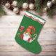 Esta estocagem de Férias tem uma imagem de um elfo gnomo bonitinho vestido com um chapéu de Papai Noel vermelho e dourado. Ele segura um copo de vinho de Papai Noel em uma mão, e uma cana de doce listrada vermelha e branca na outra. E é colocada sobre um fundo verde de Natal. Um design branco de borda escalada, bordado em vermelho, mantém seu nome personalizado no topo. A parte de trás da estocagem é idêntica à da frente.
