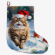Meia De Natal Grande Gato Persa Sentado em Neve com Chapéu de Natal