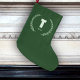 This elegant green Christmas stocking features a classic letter T monogram framed by a laurel wreath and personalized with any name. A timeless holiday keepsake, perfect for mantel décor, gift giving, or creating a coordinated family stocking set. Customize the name and make Christmas morning feel extra special.