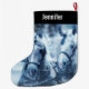 Estocagem festiva de Natal, personalizada com um nome. Projetado com uma fotografia de um par de cavalos pegados juntos. Um dia de neve e um filtro azul criam uma cena mágica.