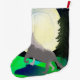 Lobo cartoonish bonito que urra em uma lua alegre sob um céu starlit.