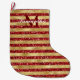 Meia De Natal Grande Monograma Dourado de faixas de brilho vermelho