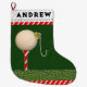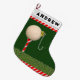 Meia de Natal de golfe e decoração de feriado para seu golfista favorito apresentando um enfeite de bola em um tee de golfe. Para personalizar, edite o texto para adicionar o nome do golfista.