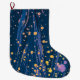 Meia De Natal Grande PAPEL AZUL abstrato COM ESCRAVOS DOURADOS