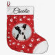 Foto de animais de estimação, vermelho e branco Esta meia natalícia personalizada para animais de estimação é adorável! Tema vermelho e branco simples e clássico com um lugar especial para a foto e o nome do seu animal favorito. Esta é também uma sala na parte inferior da estocagem, onde você pode adicionar texto como o ano ou "Feliz Natal!"