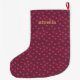 Esta moda estocada de Natal apresenta uma ameixa moderna e um impressão de ponto de aquarela cor-de-rosa com nome na tipografia dourada. Visualize esta coleção de feriados para coordenar itens.