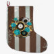 Meia De Natal Grande Relógio e Rosas de Turquesa em Striping