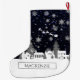 Adicione um toque personalizado à sua manta com esta reserva festiva personalizada da aldeia de Natal. Apresentando uma charmosa vila de Natal aninhada entre pinheiros por baixo de um brilhante céu noturno estrelado, o design captura a trenó dos Papais noeis e rena voadora soprando por cima através de frágil quedas de neve. Seu nome é mostrado na tipografia moderna para um na moda, acabamento personalizado, fazer-o um pedaço perfeito de decoração festiva. Espacial e decorativa, essa estocagem está pronta para ser preenchida com surpresas da véspera de Natal e acarinhada pelos próximos anos.