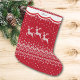 Três renas brancas pulam sobre a superfície dessa estocagem de Natal fofa. As renas fazem parte de uma design nórdica falsa, colocada sobre fundo vermelho. Um design branco de borda escalpada, bordado em vermelho, contém seu nome personalizado em cinzas no topo. A parte de trás da estocagem é idêntica à da frente. *Por favor, observe - o visual de tricô deste design é simulado para parecer como se fosse de malha.