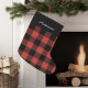Meia De Natal Grande Xadrez de Buffalo Vermelho com Nome