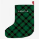 Xadrez verde clássica padronizou estocagem de Natal com nome personalizado em texto branco. Compre esta loja para opções de cores festivas adicionais e belas decorações de férias!