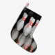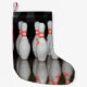Uma estocagem de Natal com uma foto de pinos de boliche.