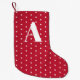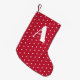 Meia De Natal Pequena Bolinhas Monogramas vermelhos de lado duplo