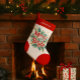 Meia De Natal Pequena Branco vermelho Xmas simples e limpo